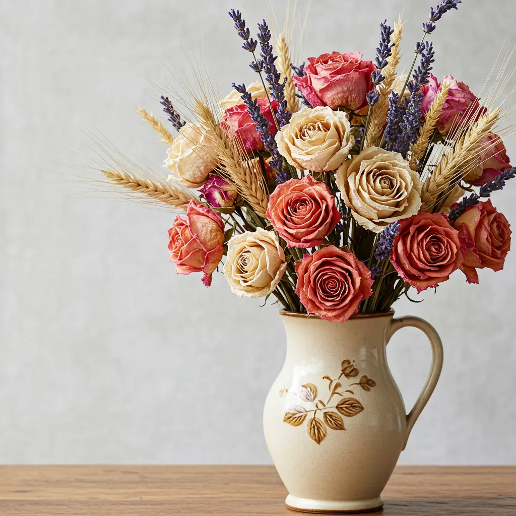 - Pro-Tip: Dried flowers are brittle. Arrange them carefully and then give them a light mist of unscented hairspray from a distance. This helps “set” them and reduces shedding from grasses like pampas.