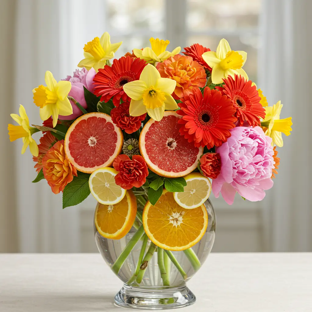- Pro-Tip: Place a smaller, narrower vase inside a larger, clear vase. Fill the gap between the two vases with your sliced citrus fruit. Then, fill the inner vase with water and your flowers. This keeps the water clean and the fruit perfectly visible.