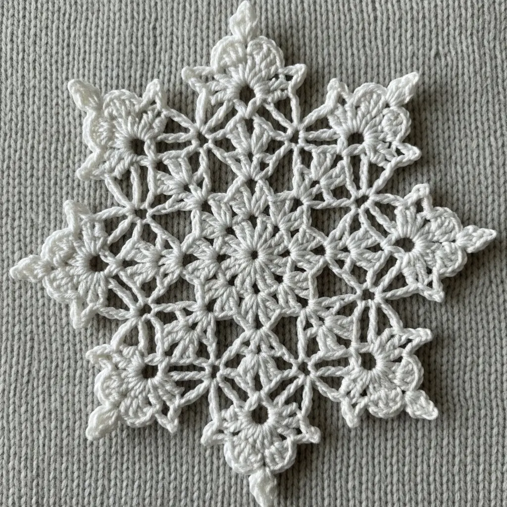 | The Ornament-Making Session | Several Hours (for multiple flakes) | • A full ball of white crochet cotton • A set of small steel crochet hooks • Basic stitch knowledge (ch, sl st, sc, dc) | • A foam blocking mat and rust-proof pins • A bottle of liquid starch or fabric stiffener • Metallic thread for hanging loops |