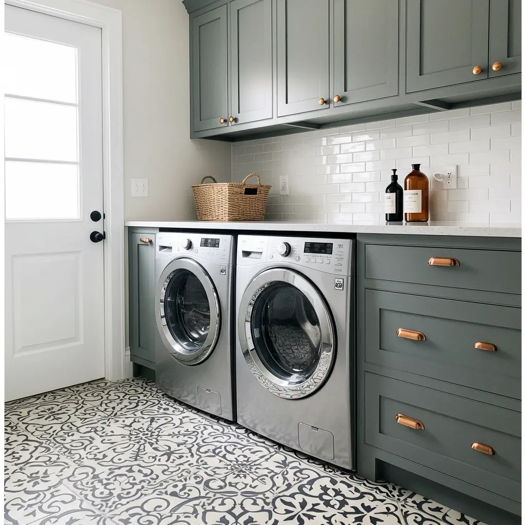 • Pro-Tip: Choose a pattern that you love but might be afraid to commit to in a larger space like a kitchen. A small laundry nook is the perfect place for a bold geometric or a fun floral.