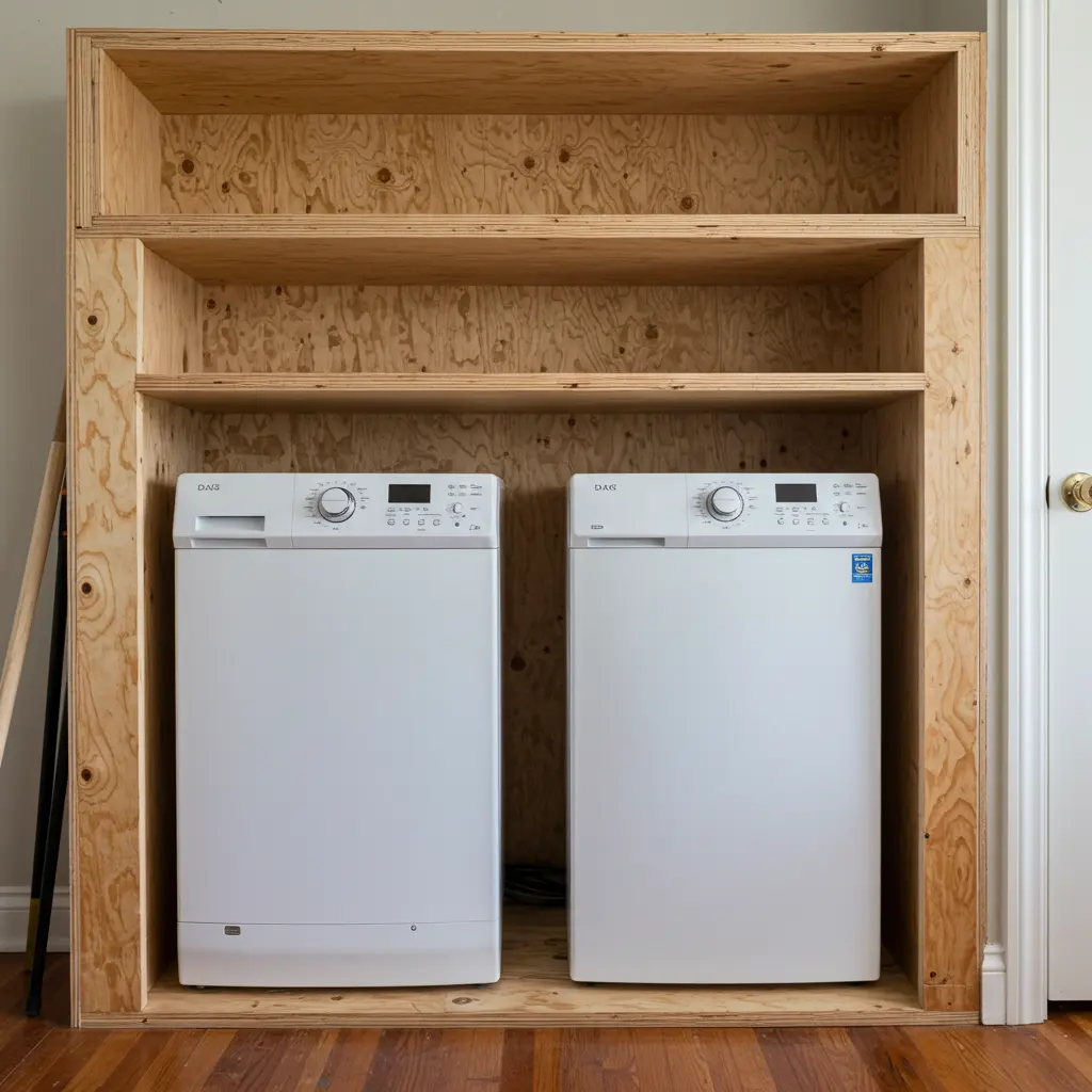 • Styling Cue: Add a simple, deep shelf made of the same plywood directly above the machines for a clean, minimalist look.