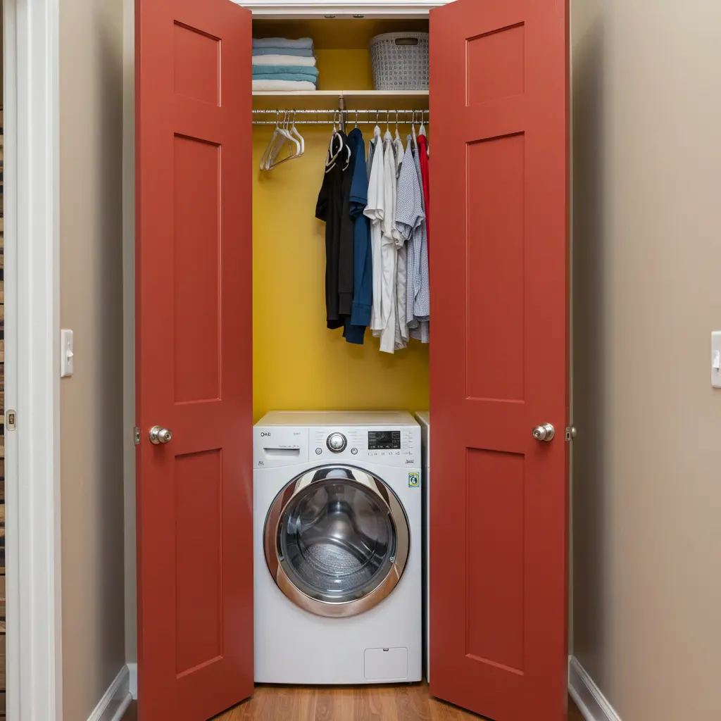 • Best For: Hiding the laundry completely in a hallway, mudroom, or guest room.