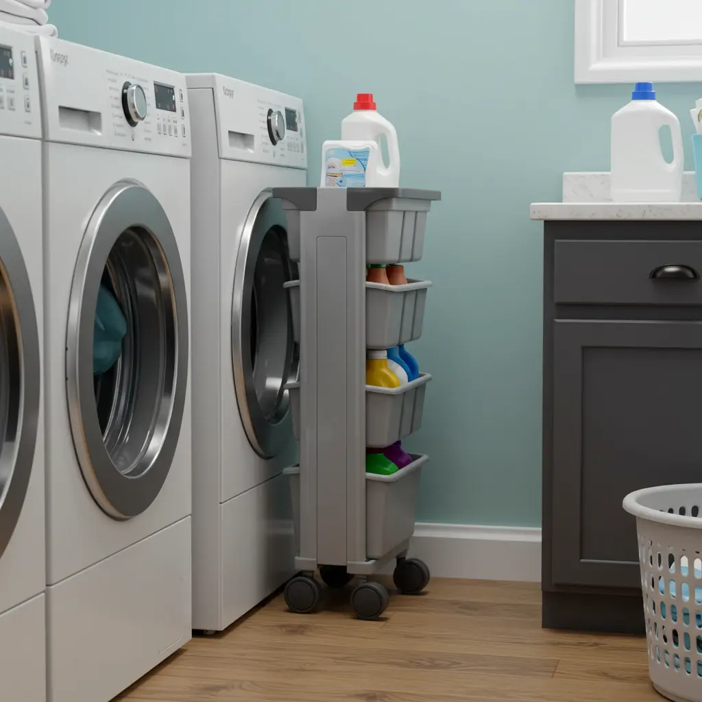 • Decant and Contain: Visual clutter is a major space-shrinker. Transfer powdered detergents, pods, and stain removers into clear, uniform containers like glass jars or canisters. Group smaller items in attractive baskets or bins. This simple step creates instant calm and order.