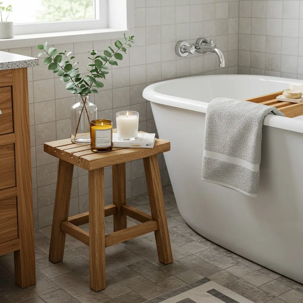 - Styling Cue: Place the stool next to the tub and style it with a neatly folded towel, a single candle, and a small vase with a sprig of eucalyptus.