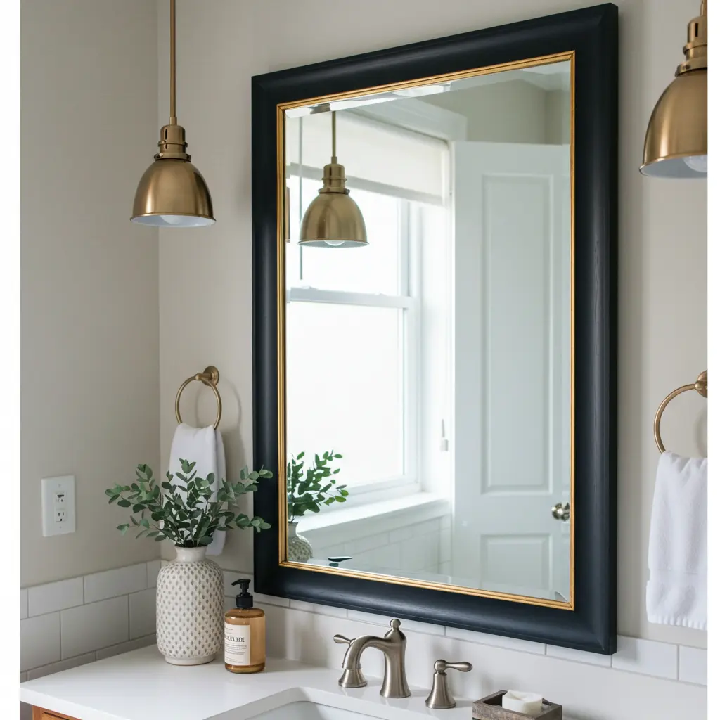 - Styling Cue: Hang a stylish vanity light directly above the newly framed mirror to complete the vignette.