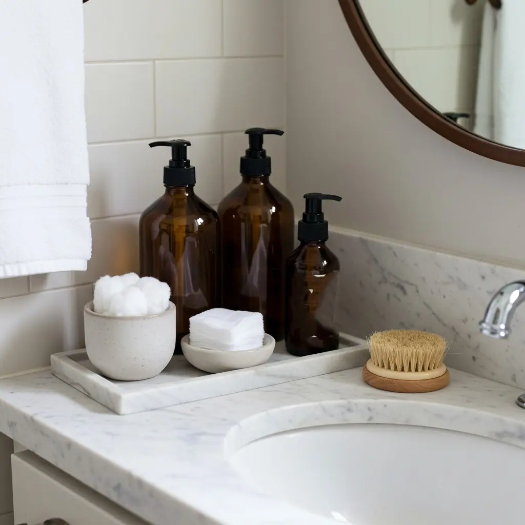 - Styling Cue: Group your decanted items on a small marble or wood tray next to the sink to contain them and create a polished, intentional vignette.