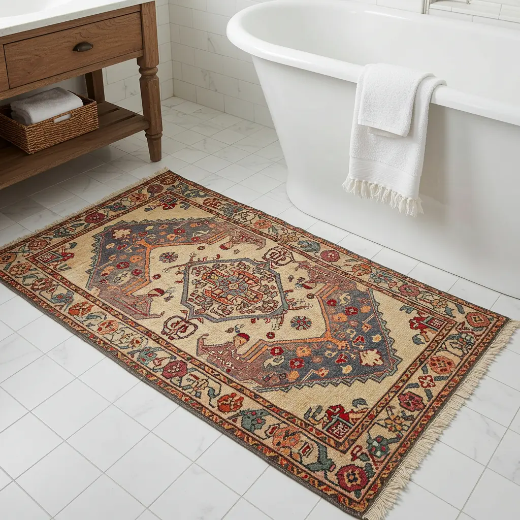 - Key Consideration: Ditch the fluffy bathmat. A small, vintage-style runner or a durable flatweave rug is far more chic.