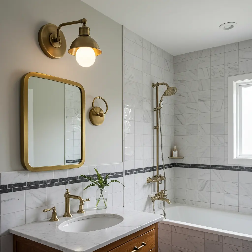 - Styling Cue: Choose a fixture with a warm metal finish, like brass or bronze, to add a touch of warmth and contrast to the cool tones of tile and porcelain.