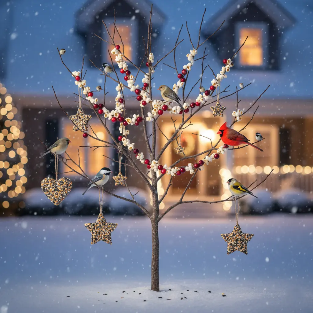 - Styling Cue: Add strings of plain popcorn and fresh cranberries for a colorful, natural, and edible garland that birds will love.