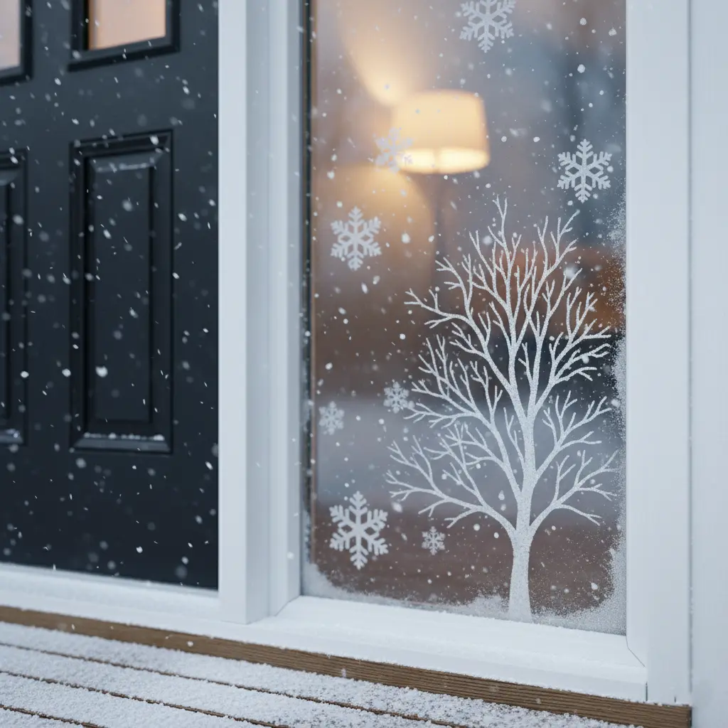 - Pro-Tip: Choose simple, elegant patterns like snowflakes, stars, or bare winter trees. Don’t overdo it one beautiful design in the corner of a window is often more effective than a cluttered scene.