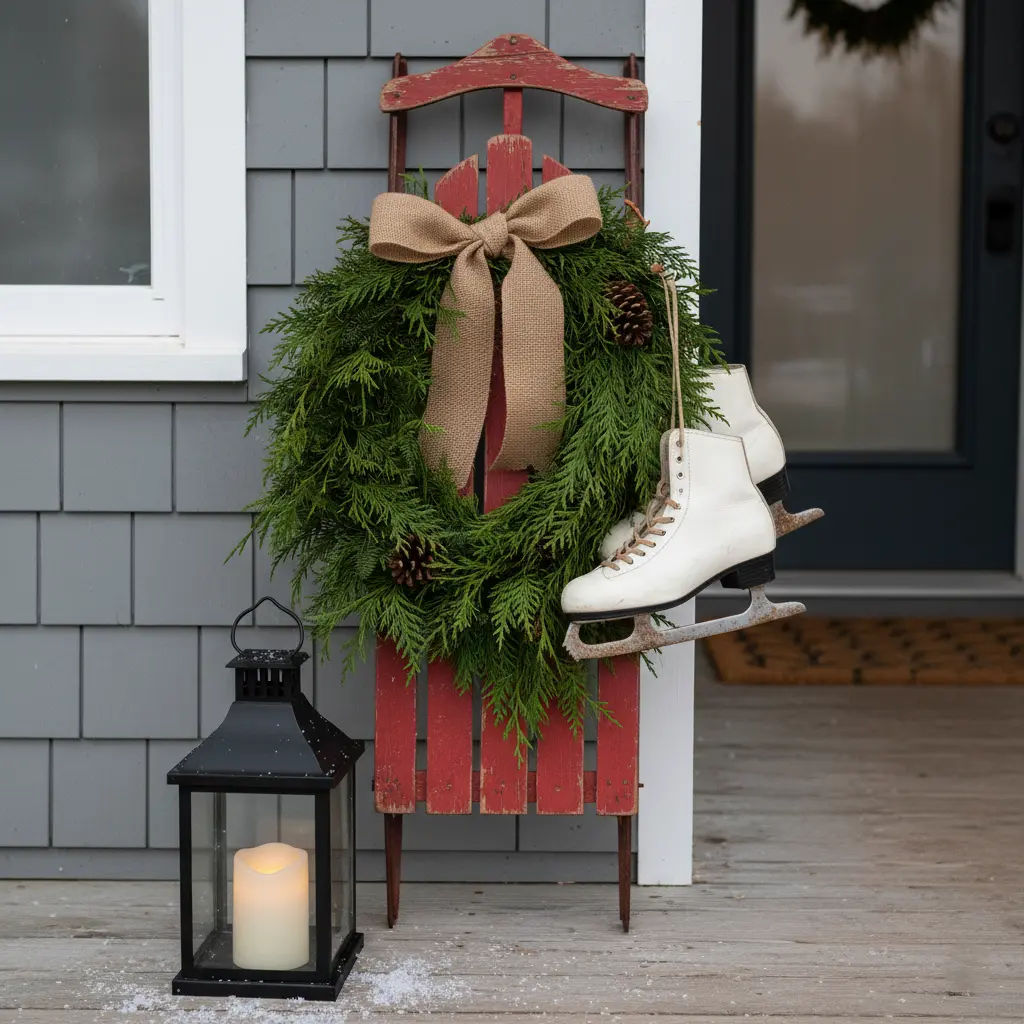 - Pro-Tip: Don’t just lean the sled by itself. Use it as a base. Tie a simple evergreen swag to the front or hang a pair of old ice skates from the steering bar.