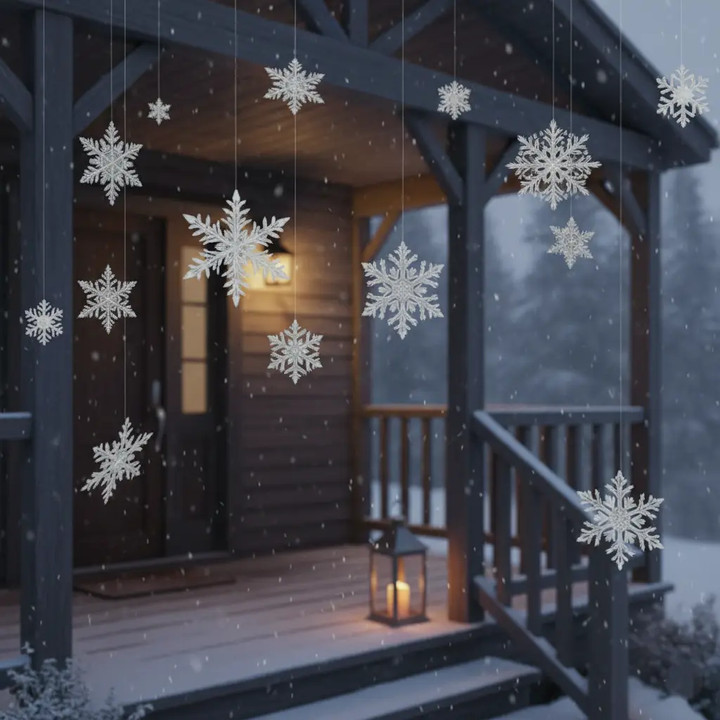 - Key Consideration: Use large, lightweight snowflakes made from wood, metal, or even plastic so they can withstand the elements.