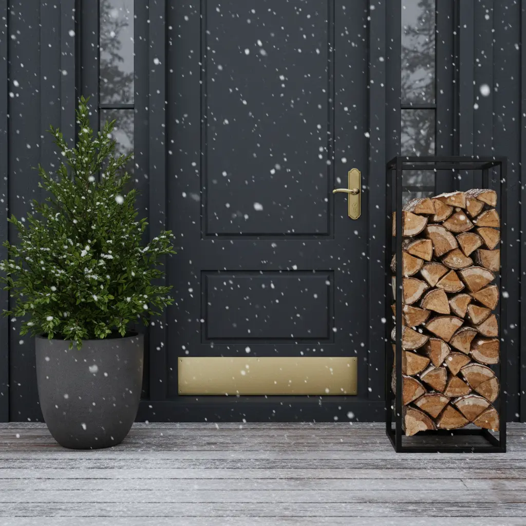 - Pro-Tip: Choose a stylish log holder a simple iron rack, a large copper pot, or a wire basket and neatly stack the wood inside.